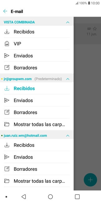 Pulsa "Recibidos" bajo la cuenta de correo electrónico deseada.