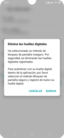 Sigue las indicaciones de la pantalla para crear una huella digital como código de seguridad.