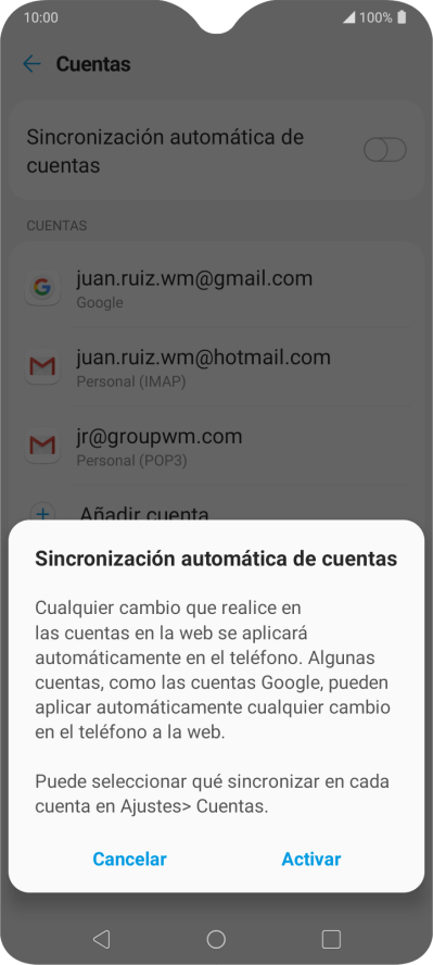 Pulsa el indicador junto a "Sincronización automática de cuentas" para activar o desactivar la función.