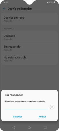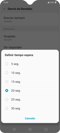 Si desvías las llamadas perdidas, tendrás que seleccionar un retardo para el desvío. Pulsa el retardo deseado y sigue las indicaciones de la pantalla para seleccionar el retardo deseado del desvío.