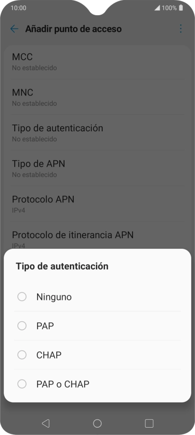 Pulsa Tipo de autenticación.