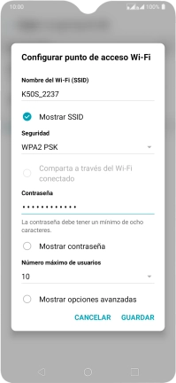 Pulsa WPA2 PSK para proteger la conexión wifi con una contraseña.