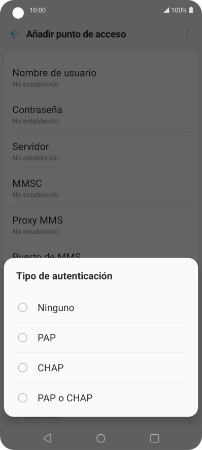 Pulsa Tipo de autenticación.