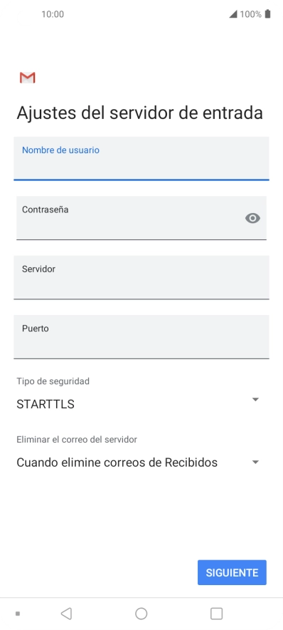 Pulsa Cuando elimine correos de Recibidos para eliminar los correos electrónicos del servidor cuando los borras del teléfono.