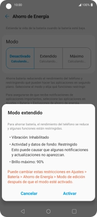 Algunas de las funciones del teléfono gastan mucha batería y reducen considerablemente la autonomía del teléfono. Puedes reducir el consumo de batería, activando el modo de ahorro de energía.