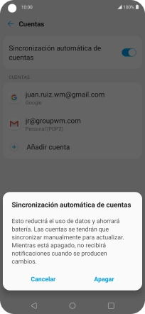 Pulsa el indicador junto a "Sincronización automática de cuentas" para activar o desactivar la función.