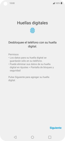 Sigue las indicaciones de la pantalla para crear una huella digital como código de seguridad.