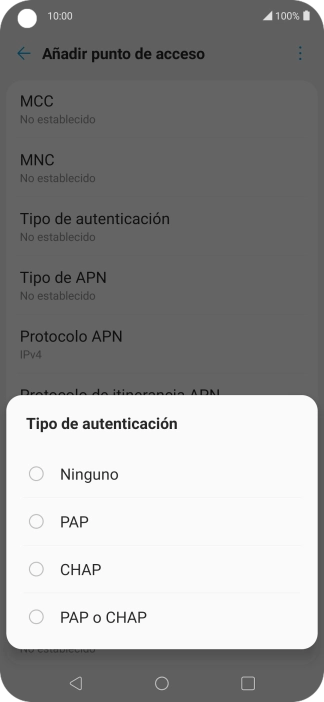 Pulsa Tipo de autenticación.