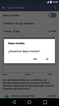 Pulsa el indicador junto a "Datos móviles" para activar o desactivar la función.