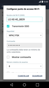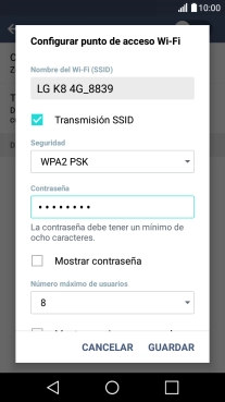 Pulsa WPA2 PSK para proteger la conexión wifi con una contraseña.