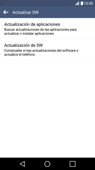 Pulsa Actualización de SW. Si hay una versión de software nueva disponible, aparecerá ahora en la pantalla. Sigue las indicaciones de la pantalla para actualizar el software del teléfono.