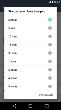 19. Selecciona el ajuste de la sincronización de correo electrónico fuera de las horas pico