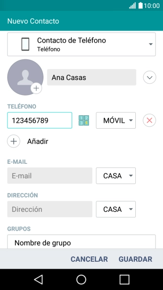 Pulsa Teléfono e introduce el número de teléfono deseado.