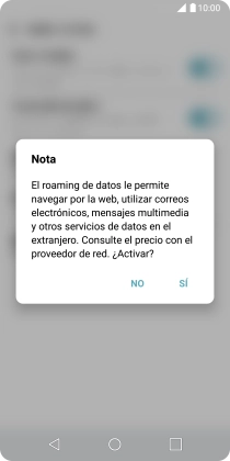 Pulsa el indicador junto a "Itinerancia de datos" para activar o desactivar la función.