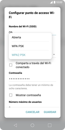 Pulsa WPA2 PSK para proteger la conexión wifi con una contraseña.