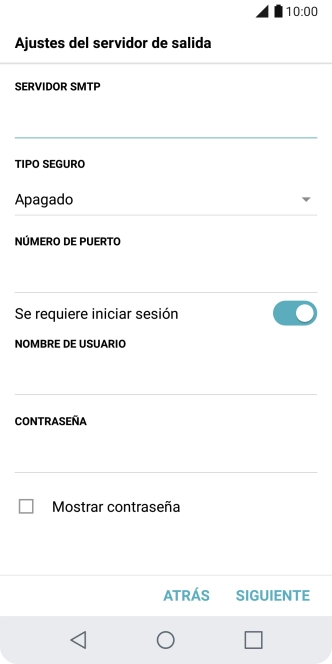 Pulsa en el campo bajo "SERVIDOR SMTP" e introduce smtp.vodafone.es.