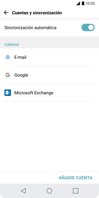 Pulsa el indicador junto a "Sincronización automática de correo electrónico." para activar la función.