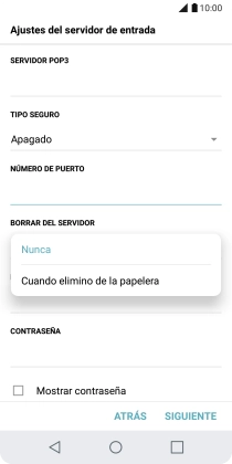 Pulsa Nunca para conservar los correos electrónicos en el servidor cuando los borras del teléfono.
