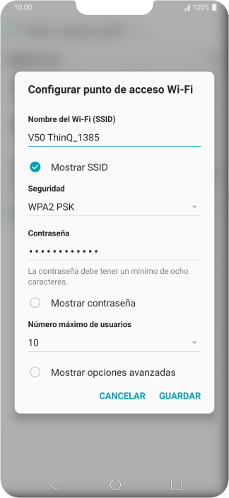 Pulsa WPA2 PSK para proteger la conexión wifi con una contraseña.