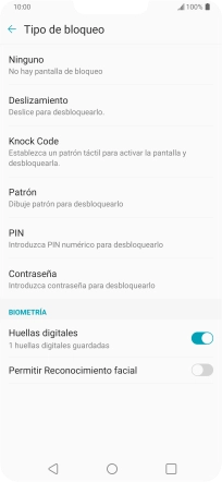 Pulsa Tipo de bloqueo e introduce el código de seguridad extra que has creado anteriormente.
