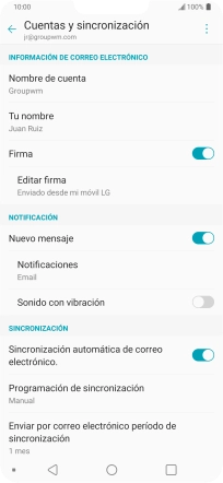 14. Selecciona el ajuste de la sincronización de correo electrónico