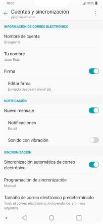 15. Selecciona el ajuste de la sincronización de correo electrónico