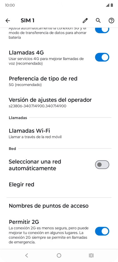 Pulsa el indicador junto a "Seleccionar una red automáticamente" para activar la función.