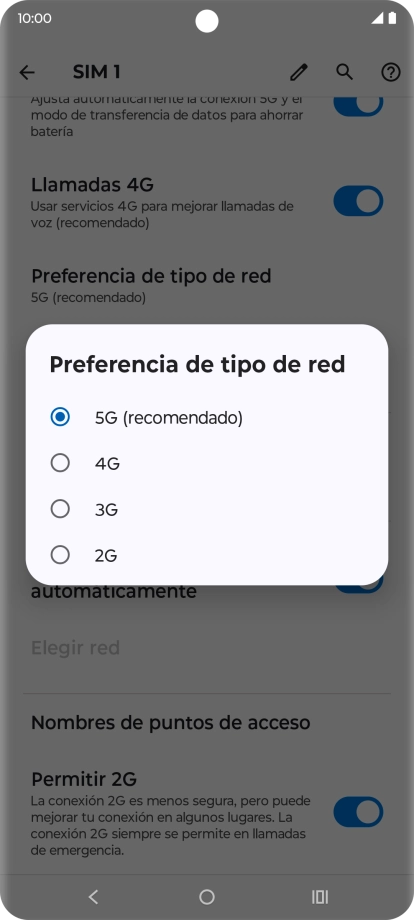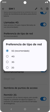Puede haber diferentes tipos de red disponibles, dependiendo del lugar donde te encuentres. Si seleccionas la conexión automática con la red de mayor velocidad, tu teléfono siempre se conectará a la red de mayor velocidad disponible en cada momento.