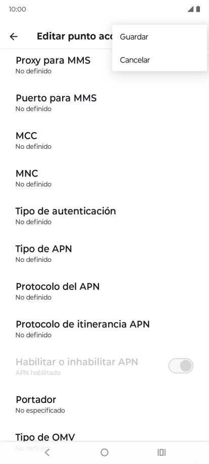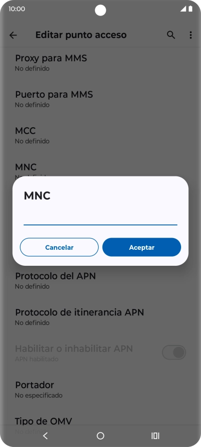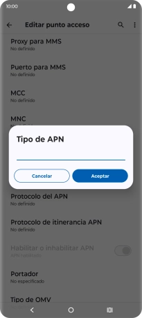 8 Introduce el tipo de APN