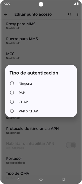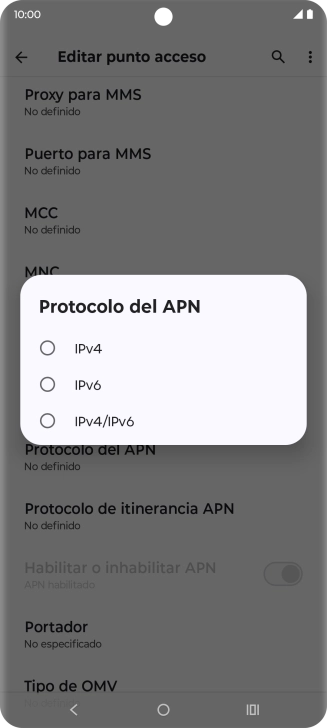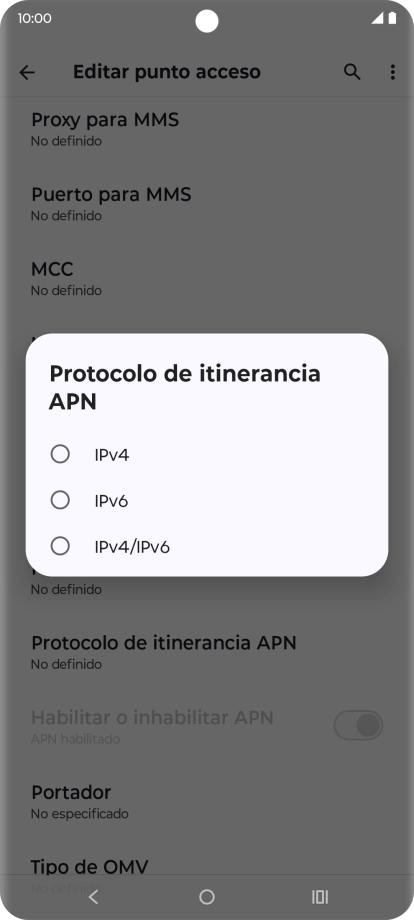10 Selecciona el protocolo del punto de acceso (APN) en roaming