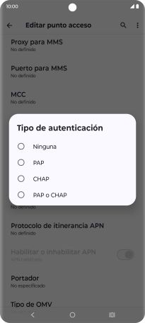 9 Selecciona el protocolo del punto de acceso (APN)