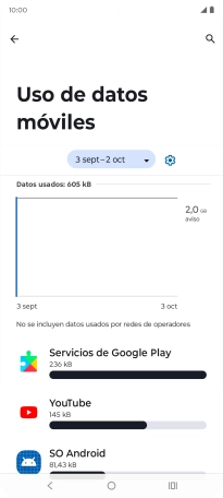 Puedes ver cuántos datos móviles has utilizado, por ejemplo, cuando has utilizado el navegador de Internet o cuando has enviado y recibido correo electrónico.