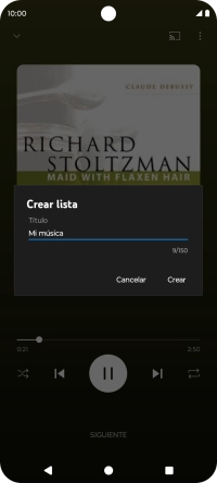 Introduce el nombre deseado de la lista de reproducción y pulsa Crear.