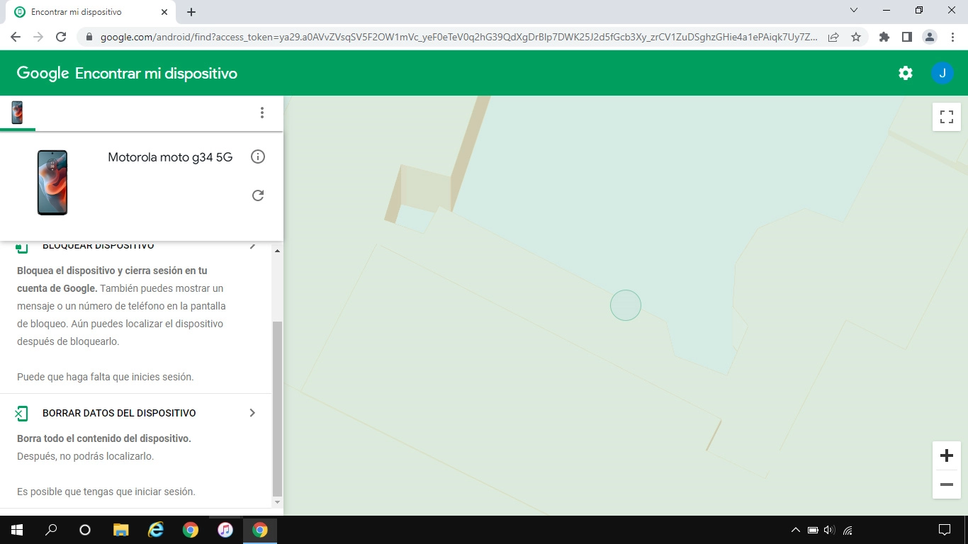 La última posición del teléfono se visualiza en el mapa.