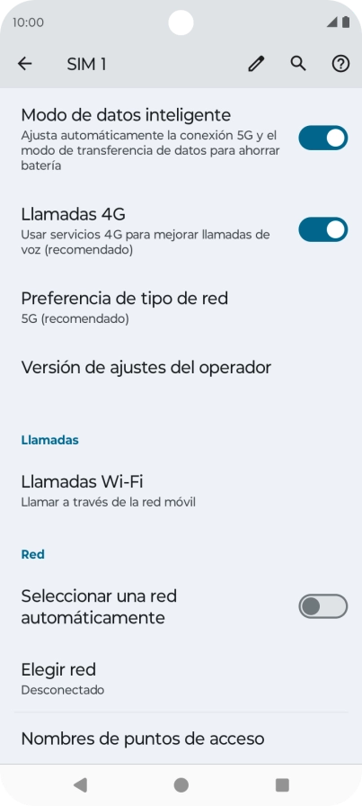 Pulsa el indicador junto a "Seleccionar una red automáticamente" para activar la función.