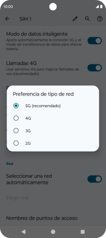 Puede haber diferentes tipos de red disponibles, dependiendo del lugar donde te encuentres. Si seleccionas la conexión automática con la red de mayor velocidad, tu teléfono siempre se conectará a la red de mayor velocidad disponible en cada momento.