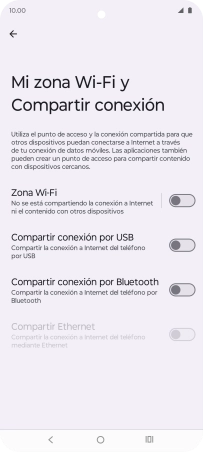 Pulsa Mi zona Wi-Fi y Compartir conexión.