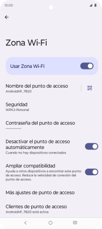 Pulsa el indicador junto a "Usar Zona Wi-Fi" para activar la función.
