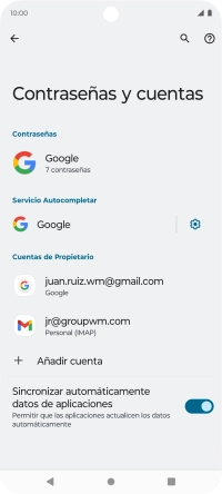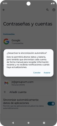 Pulsa el indicador junto a "Sincronizar automáticamente datos de aplicaciones" para activar o desactivar la función.