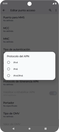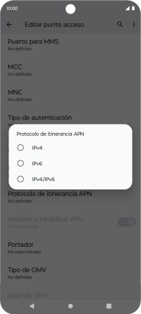 10. Selecciona el protocolo del punto de acceso (APN) en roaming