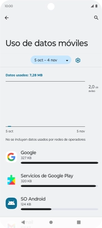El consumo de datos por cada aplicación aparece bajo el nombre de la aplicación.