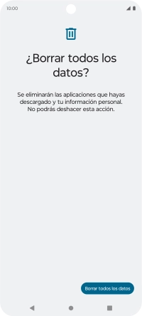 Pulsa Borrar todos los datos. Espera unos instantes mientras el teléfono restablece la configuración predeterminada. Sigue las indicaciones de la pantalla para configurar el teléfono y dejarlo listo para su uso.