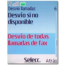 Elija Desvío de todas llamadas de fax o Desvío de todas llamadas de datos y pulse la tecla de navegación.