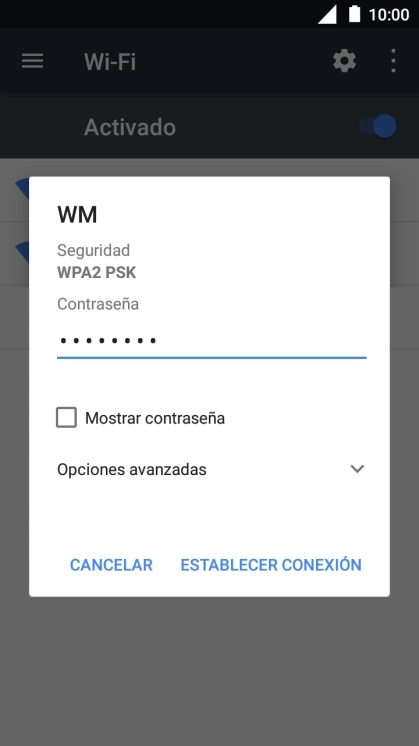 Introduce la contraseña de la red wifi y pulsa ESTABLECER CONEXIÓN.