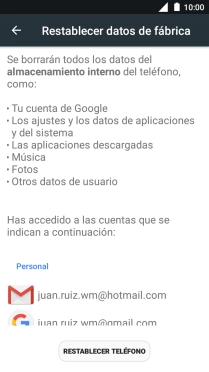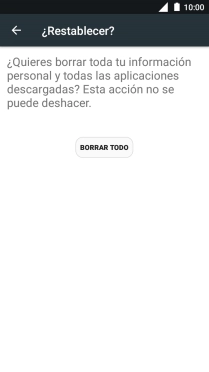 Pulsa BORRAR TODO. Espera unos instantes mientras el teléfono restablece la configuración predeterminada. Sigue las indicaciones de la pantalla para configurar el teléfono y dejarlo listo para su uso.