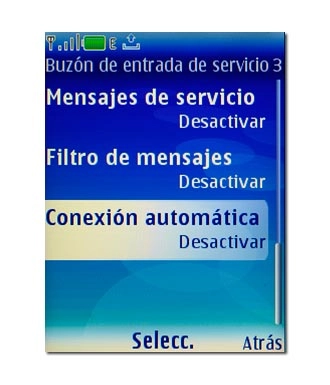 Si activa Conexión automática, el teléfono se conectará automáticamente a Internet cuando reciba un mensaje WAP push. Si desactiva este ajuste, el teléfono no establecerá conexión hasta que usted abra el mensaje WAP push de su bandeja de entrada de mensajes WAP push.