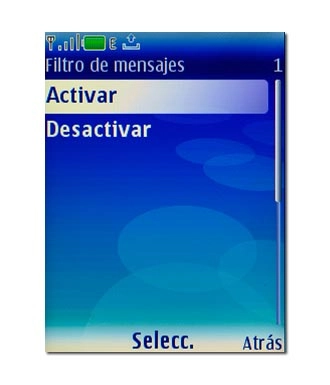 Si activa Filtro de mensajes, sólo recibirá mensajes WAP push de proveedores autorizados por su operador.