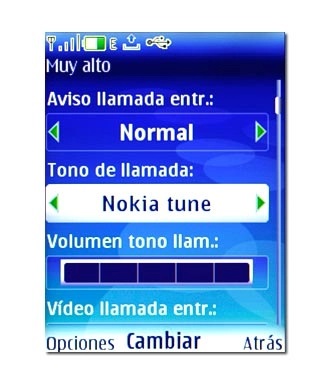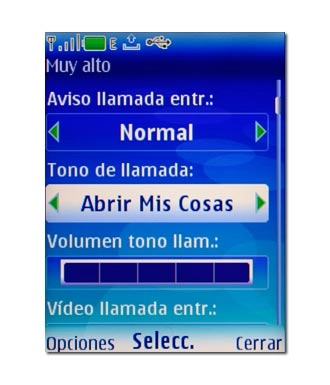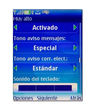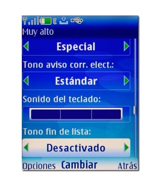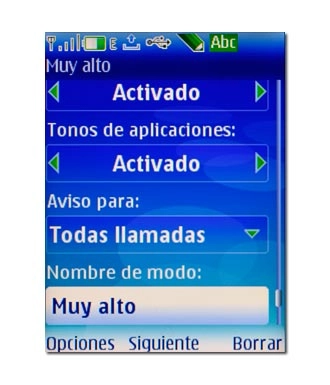 Si selecciona Volumen tono llam., Sonido del teclado o Nombre de modo, no necesita pulsar la tecla de navegación, sino simplemente elegir el punto del menú.