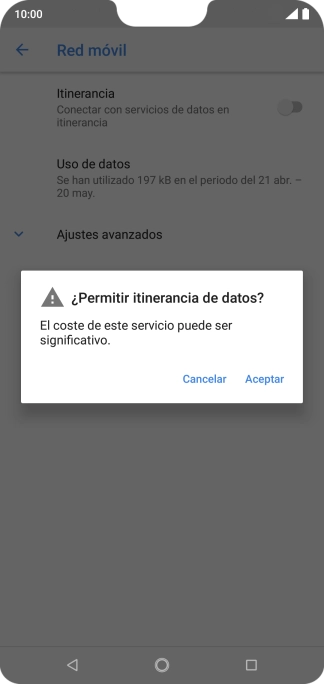 Si el roaming de datos está activado, pulsa Aceptar.