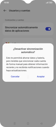 Pulsa el indicador junto a "Sincronizar automáticamente datos de aplicaciones" para activar o desactivar la función.